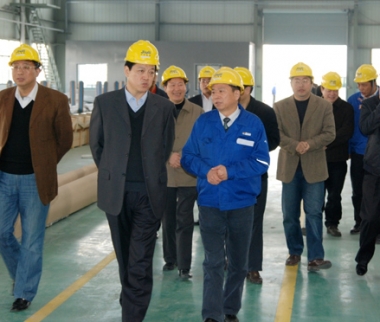 2007年2月,時(shí)任浙江省原副省長(zhǎng)金德水(左二)視察久立生產(chǎn)現(xiàn)場(chǎng)