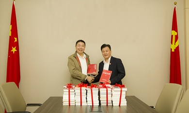 書是精神的食,讓書找一個需要它的家,讓知識流動起來,是對書本價值的升華。10月21日,黨委書記蔡興強代表集團黨委為湖州市中心醫院黨委送上了自己精心準備的書籍,讓廣大到訪者可以在中心醫院職工書屋共享書香。 湖州市中心醫院黨委副書記、紀委書記張強代表中心醫院黨委接受贈書。
