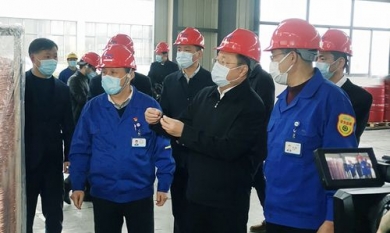 2月26日 ,湖州市市委副書記、代市長王綱一行蒞臨久立電氣調研考察。王市長在久立集團董事長蔡興強、久立電氣總經理徐珺文的陪同下,參觀了連鑄連軋生產線、精密導線生產線等。蔡總、徐總分別針對集團復工過程、