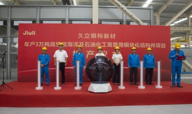 9月26日,在中秋、國慶雙節來臨之際,久立鋼構新材年產3萬噸高性能海洋及石油化工裝置用模塊化結構件項目竣工投產儀式在久立鋼構舉行。